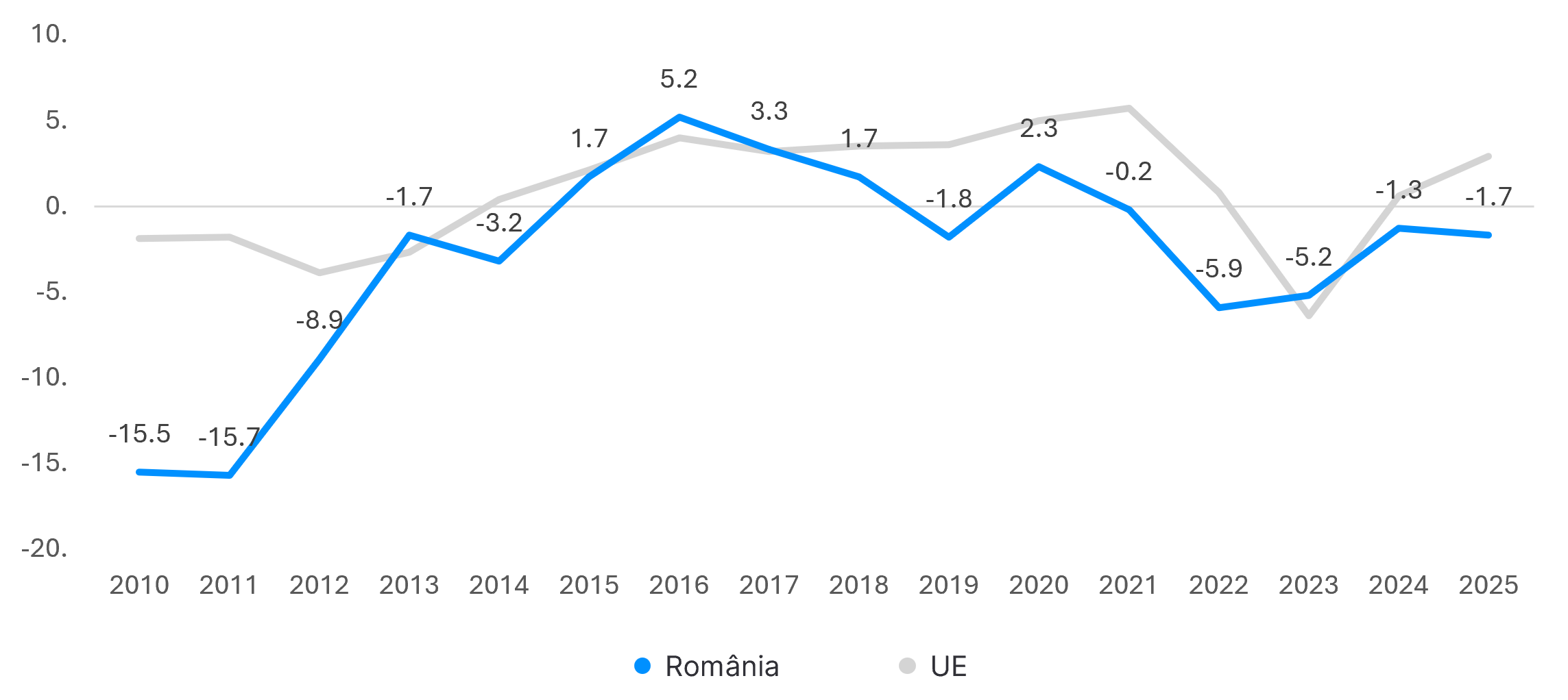 - У той час як у Європі найвище зростання дефляційних цін у 2025 році спостерігалося в Португалії (+14,7%), Угорщині (+11,7%) та Хорватії (+10,0%), Румунія (+1,7%) посідає одне з останніх п’яти місць серед країн ЄС, поряд із Фінляндією (-3,6%) та Швецією (-1,6%).